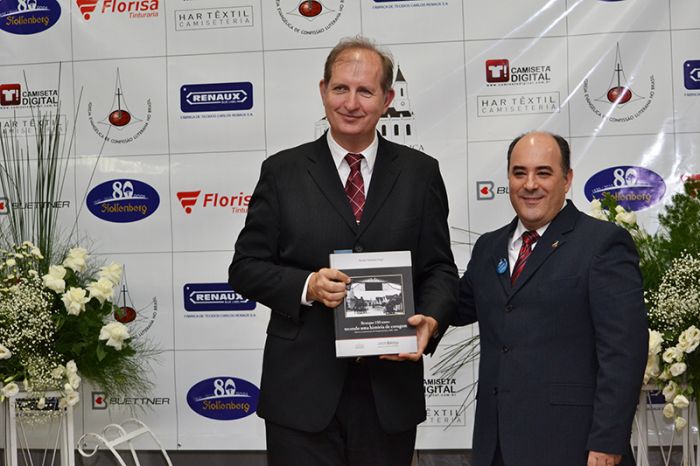 A noite ainda teve a entrega, para alguns membros da comunidade, do livro “150 anos de Brusque”, um relato da colonização ao dias atuais, dos pioneiros e da participação da IECLB em Brusque, autografado pelo professor Marlus Niebur, organizador da obra.
